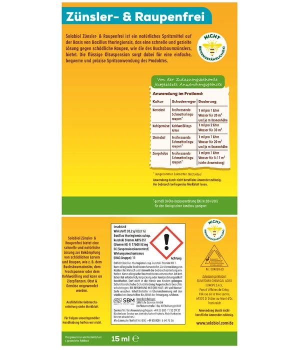 Solabiol® Zünsler-& Raupenfrei Flüssigkonzentrat, 15 ml