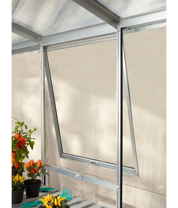 Sie lieben es, Ihr Obst, Ihr Gemüse und Ihre Kräuter im eigenen Garten zu optimalen Bedingungen anzubauen? Dann ist ein Seitenfenster für Ihr Gewächshaus von Vitavia eine hervorragende Bereicherung. Dank des Vitavia Seitenfensters V schaffen Sie eine gute Atmosphäre und haben die besten Voraussetzungen, um Temperatur und Luftfeuchtigkeit für Ihre Pflanzen individuell regeln zu können. Ob Ihr Gewächshaus eine stete Lüftung benötigt oder gerade entlüftet werden muss, das Fenster ermöglicht Ihnen die ideale Regelung. Da Ihr Fenster sich von unten öffnen lässt, ist Ihr Gemüse auch vor Regen und Schnee gut geschützt. So erhalten Sie ein praktisches Zubehör und schaffen für Ihre Tomaten oder Beeren ein gutes Ambiente!
