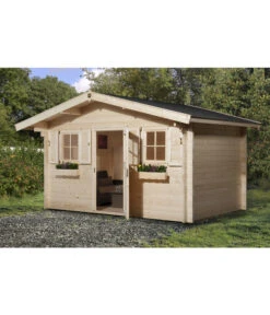 Gartenhaus in stabiler Blockbohlenbauweise, 45 mm Wandstärke, mit 19 mm Massivholzdach und Massivholzboden