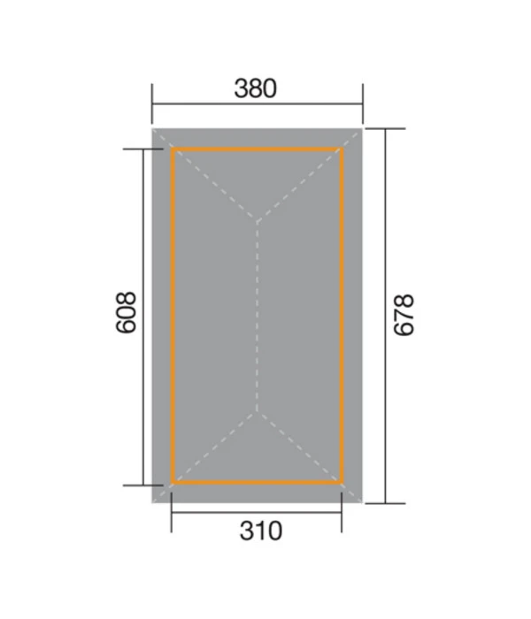 Dachüberstände: Seiten je ca. 35 cm, vorne und hinten 35 cm
