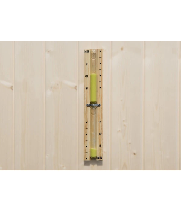 Gerade wenn man seine Kinder mit einem Saunagang erfreuen oder ihr Immunsystem stärken möchte, sollte das Saunieren unter genauer Beobachtung der Dauer erfolgen. Auch hier hilft Ihnen die Weka Sanduhr aus naturbelassenem Holz weiter. Sobald Sie das Stundenglas drehen, rieselt der Sand nach unten und zeigt Ihnen die vergangenen Minuten an, sodass Sie diesen schönen Moment in der Familiensauna unbesorgt genießen können. Holen Sie sich dieses praktische Sauna-Zubehör gleich nach Hause!