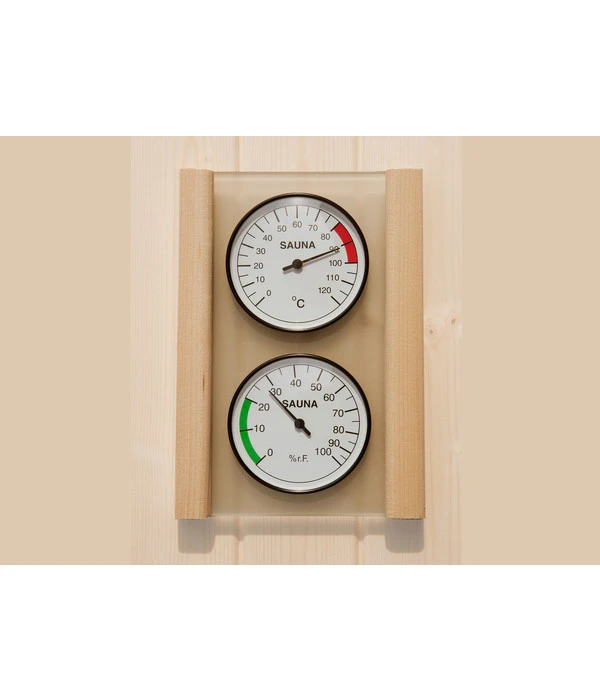 Das Set besteht aus einem Hygrometer zur Luftfeuchtigkeits-Messung sowie einem Thermometer zur Überprüfung der Temperatur. Somit können Sie Ihr eigenes Sauna-Erlebnis steuern und unter den perfekten Bedingungen erleben. Die Messgeräte sind in einem edlen Holzrahmen eingefasst und fügen sich optisch perfekt in jede Sauna ein. Die idealen Bereiche für den Sauna-Genuss sind für Sie auf den Messgeräten markiert. Zögern Sie nicht länger, übernehmen Sie die Kontrolle in Ihrer Sauna und bestellen Sie am besten gleich dieses praktische Sauna-Zubehör-Set von Weka.