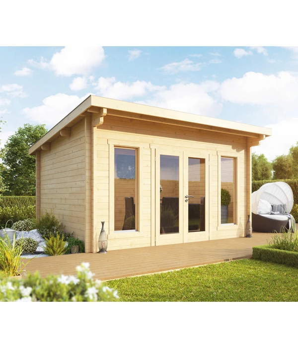 Wenn es bald fix und fertig in Ihrem Garten steht und Sie das perfekte Zusammenspiel von moderner Architektur und der anheimelnden Ausstrahlung von hochwertigem Holz bewundern, werden Sie sich immer wieder bestätigen: Das Wolff Finnhaus Gartenhaus Trondheim 44-F ist schon von außen ein Schmuckstück. Und wenn Sie das Holzhaus dann durch die großzügige Doppeltür betreten, erwartet Sie innen ein wunderbar heller, lichtdurchfluteter Raum mit einer stattlichen Größe von 25 m². Ein Raum, den Sie ganz nach Ihrem persönlichen Geschmack und Ihren Freizeitgewohnheiten einrichten und nutzen können. Ob Sie dort rauschende Gartenpartys feiern, von denen Ihre Freunde noch lange reden werden, ob Sie dort gemütliche Sommerabende mit der Familie verbringen oder ob Sie es als ruhiges Plätzchen zum Arbeiten nutzen – mit dem Wolff Finnhaus Gartenhaus Trondheim 44-F wird die schönste Zeit des Jahres noch ein bisschen genussreicher für Sie und Ihre Familie.